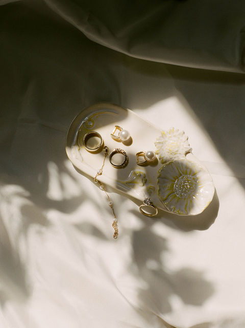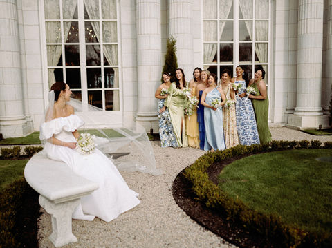 (Left) Part of Jill's wedding day ensembles. Her wedding look mirrored Dior's fascination with flowers, from the lush bridal bouquet, the lace appliqué on her dress and veil, to the pattern on her wedding heels.